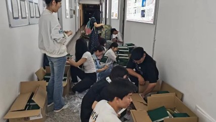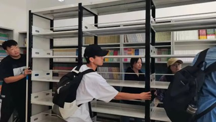 “第五十、五十一、五十二号古籍……”“第五十、五十一、五十二在这。"文科楼三楼不时传来这样的声音。活动过程中,志愿者们相互配合,大家穿梭在一排排书架中,了解古籍分类与版本,认真计算古籍的数量,将古籍摆放整齐,分批次有序地进行分工合作,提高了本次整理工作的效率。