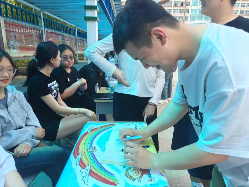 本次活动以游戏互动的形式进行,一共有八个游戏,分别是:接力作画、察言观色、我懵了、一心二用、速记速答、跳跳乒乓球、心语信箱,生命礼物。在游戏的过程中,同学们释放自我,热情高涨,配合默契,为此次活动注入了别样的青春与活力。在活动“奖励”环节,同学们表现自我,展示才艺,尽显自信风貌。