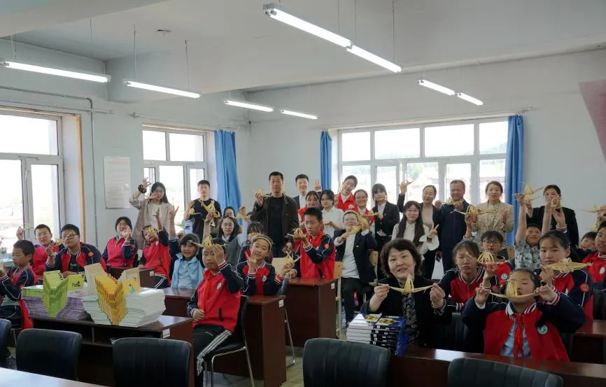 活动尾声,全体嘉宾手持书籍与竹编龙舟合影留念,共同见证这份文化与爱心的交融与传承。孩子们手系五彩绳、手捧新书,笑容如夏花绽放。“愿五彩绳护佑童心,书香伴成长远航!”——活动在祝福中圆满落幕,但传统与希望的传递永不止步。